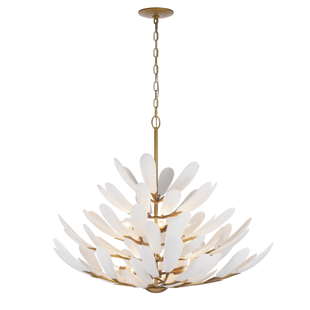 10-Light Chandelier - Legacy Brass with White Ceramic