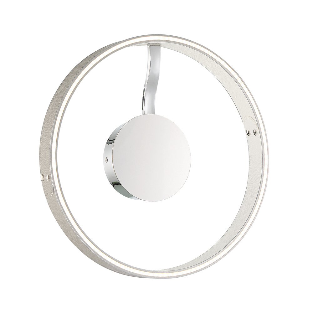 The Verdura collection features vegan leather, accentuated by decorative silver studs. The two-toned fabric highlights one color on the inside while displaying a complementary second color on the outer ring. The textured grooves are highlighted by the luminous glow of integrated LED lights that are encased between. This collection is not only abundant in size but also in the number of fixtures offered. Be it a small home office or a grand staircase, the Verdura collection is available in a range of fixture sizes to fit any room space.