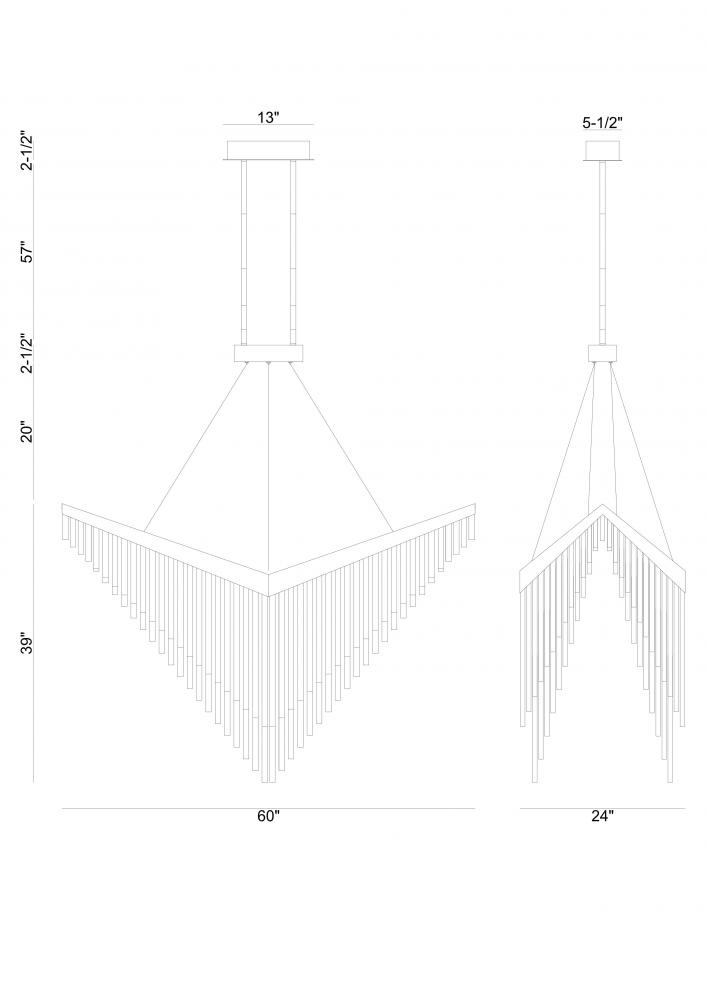 The chevron shape first found note in the heraldic services to the monarchy as proclaimer of news and information. Vivian uses a series of these āVā shapes to present stunning statements of lighting mastery that will instill a space with monarchical glory and timeless elegance.