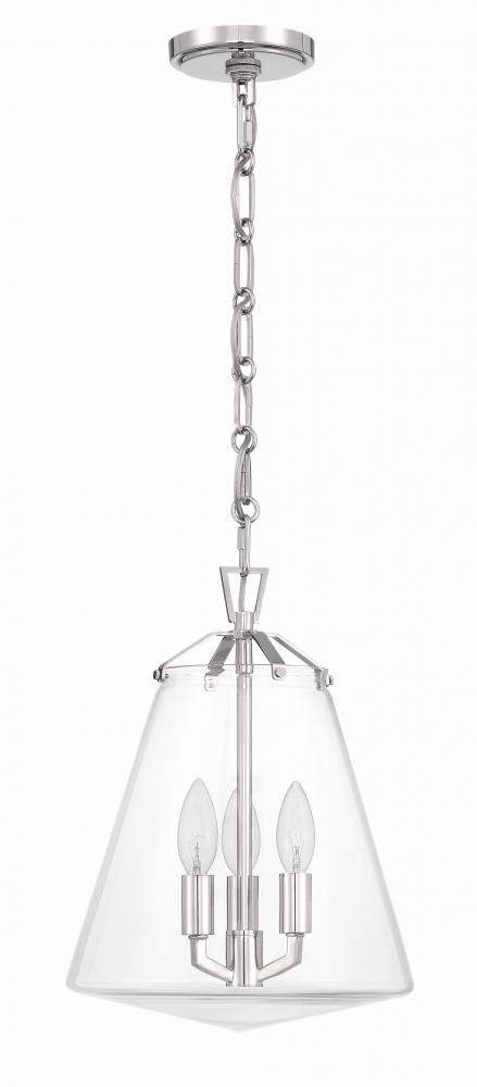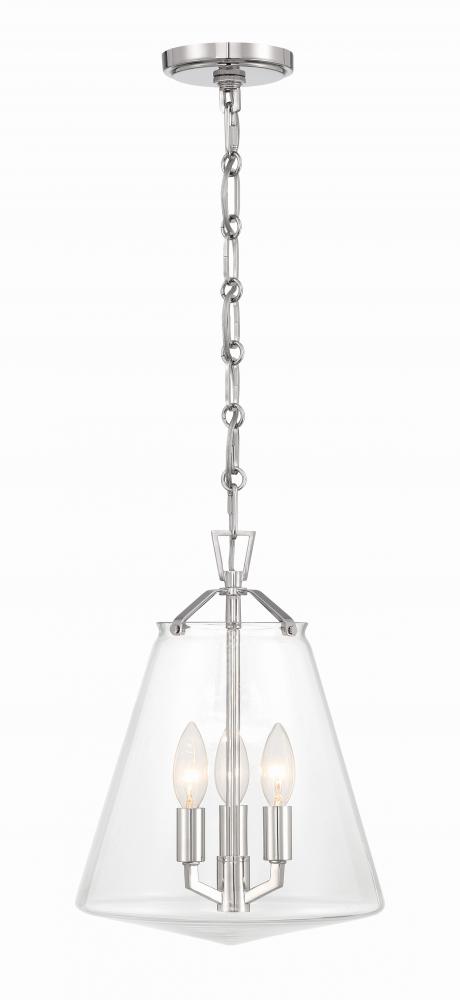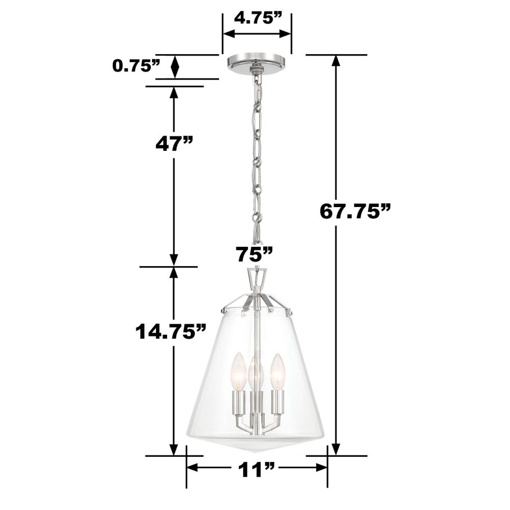 The Voss Collection is a sleek, enduring design with subtle angular details, offered in various finishes and sizes for your unique space. It’s clear glass cone-shaped pendant is closed on the bottom and fastened with metal on its open top. The patterned chain detail adds a touch of character to its streamlined design. The Voss Collection is not confined to a single style; it is a versatile design that suits a variety of spaces, from minimalist and modern to classic and eclectic.