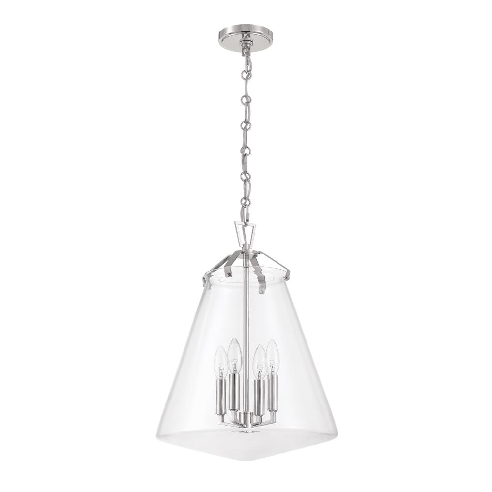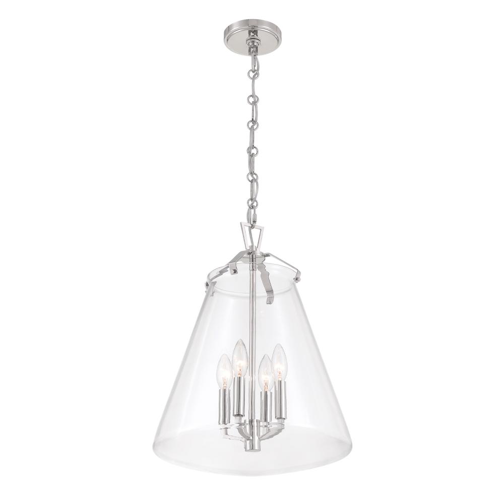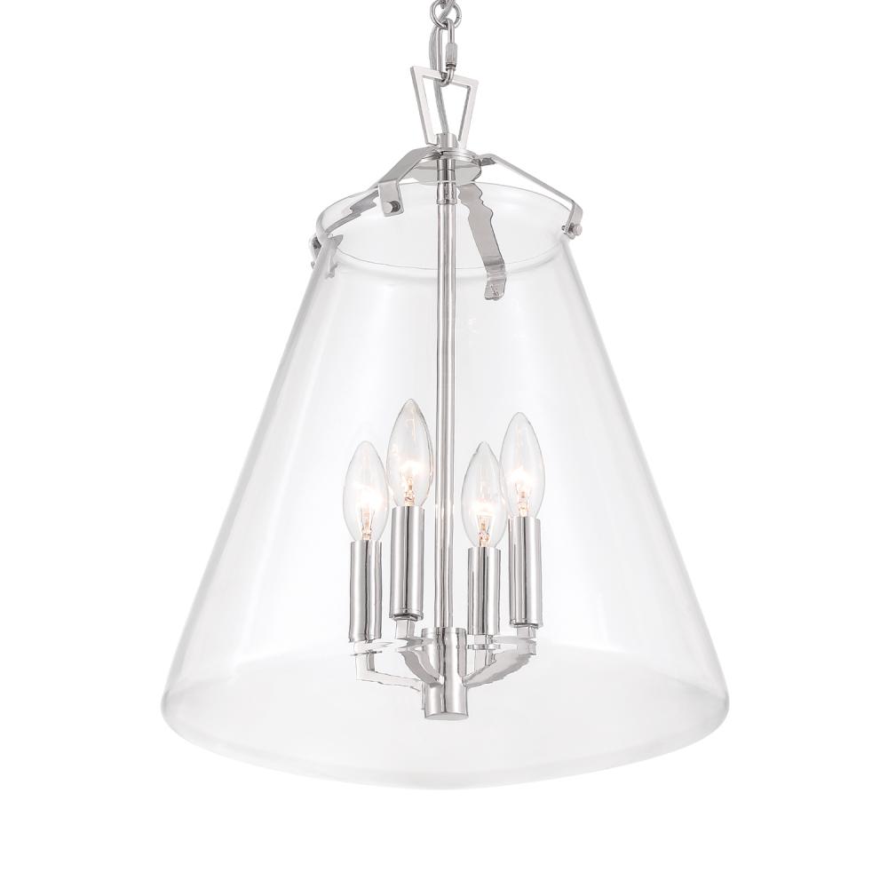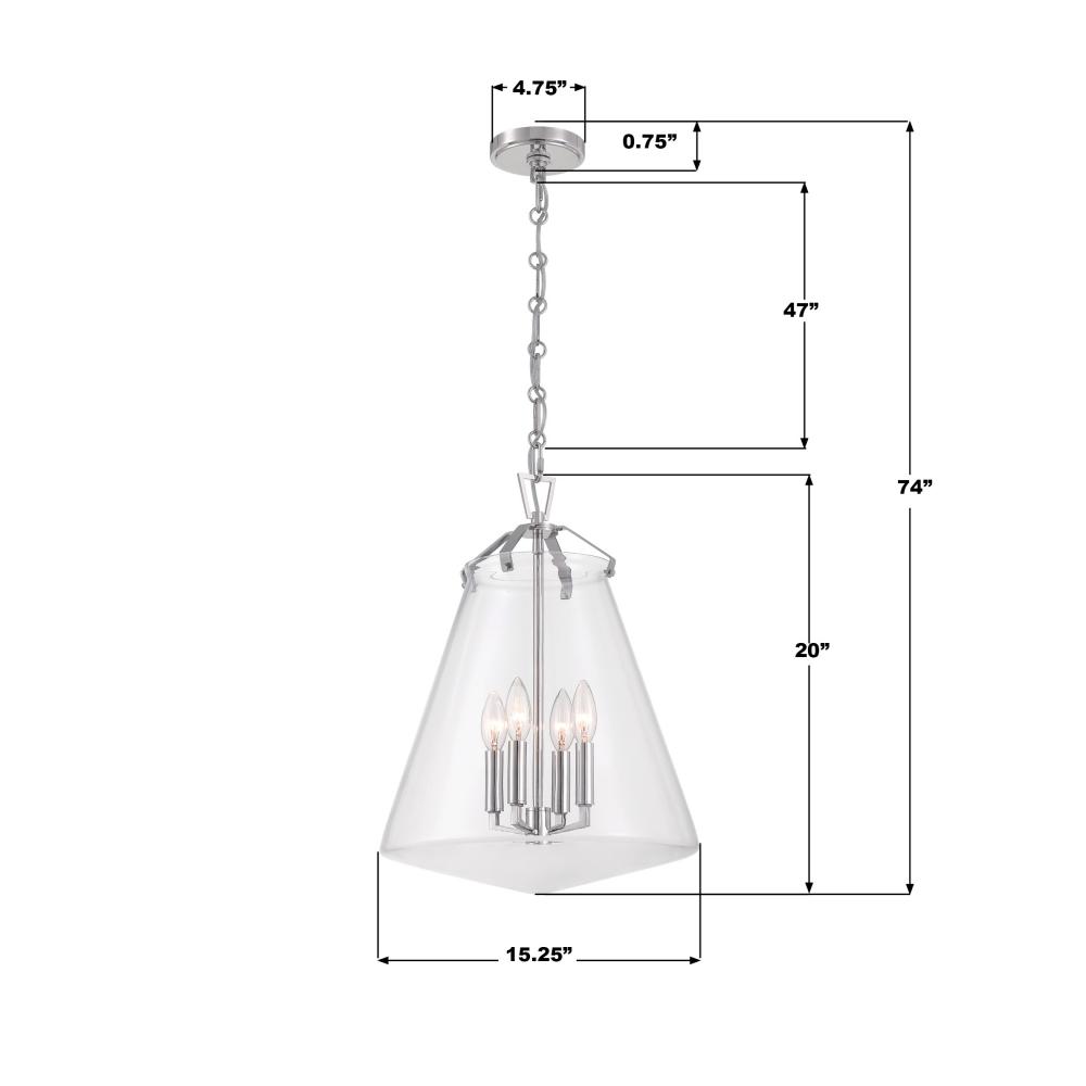 The Voss Collection is a sleek, enduring design with subtle angular details, offered in various finishes and sizes for your unique space. It’s clear glass cone-shaped pendant is closed on the bottom and fastened with metal on its open top. The patterned chain detail adds a touch of character to its streamlined design. The Voss Collection is not confined to a single style; it is a versatile design that suits a variety of spaces, from minimalist and modern to classic and eclectic.