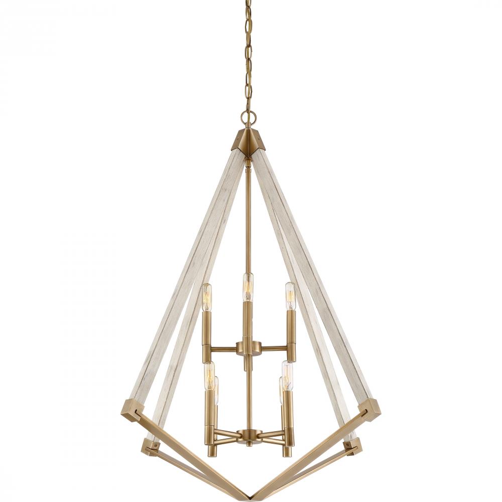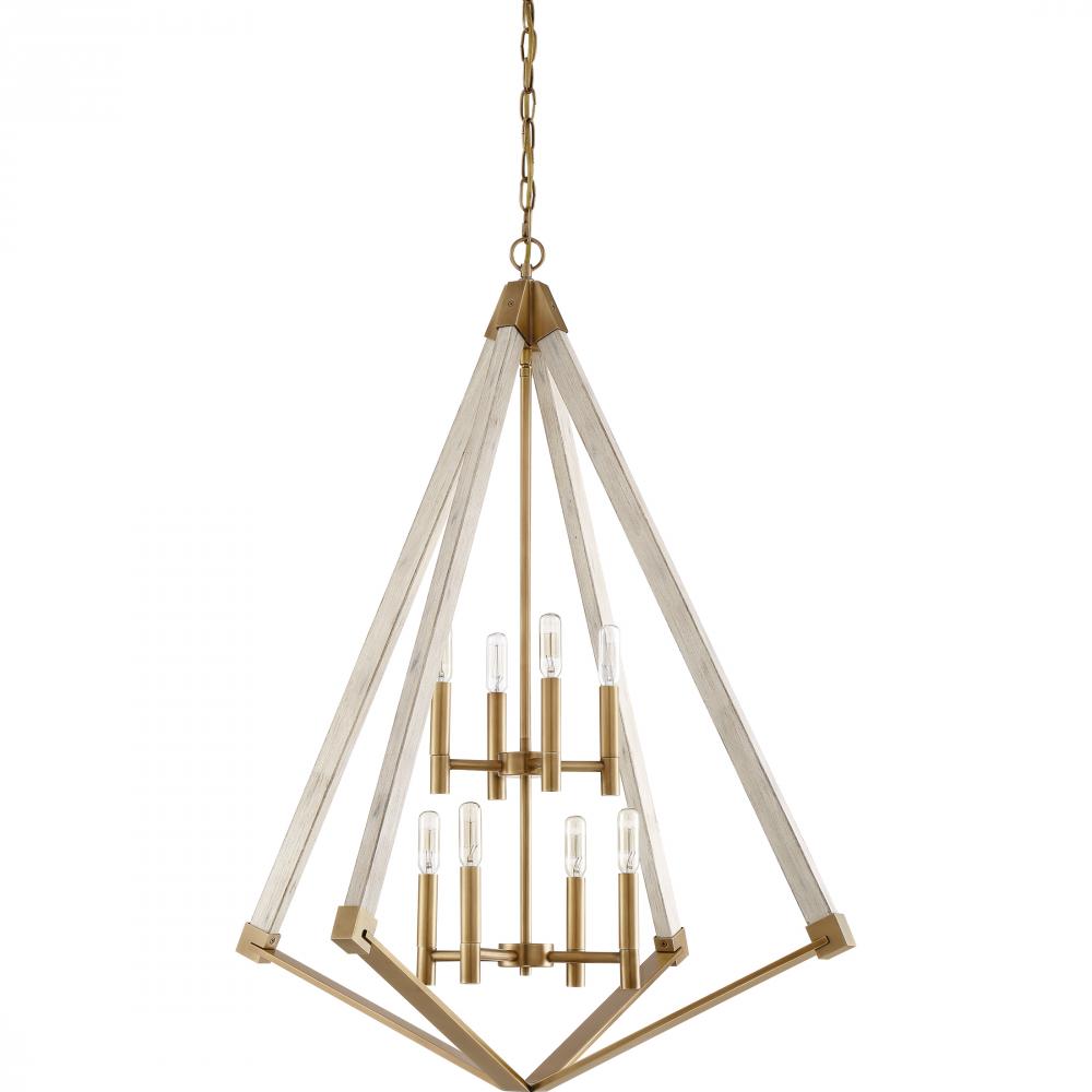 The bold lines and vintage finishes of the Viewpoint are a match made in design heaven! The inverted diamond silhouette features a faux wood frame in a whitewashed finish that is complemented by the soft brass hue of the accent caps and center column. Elon