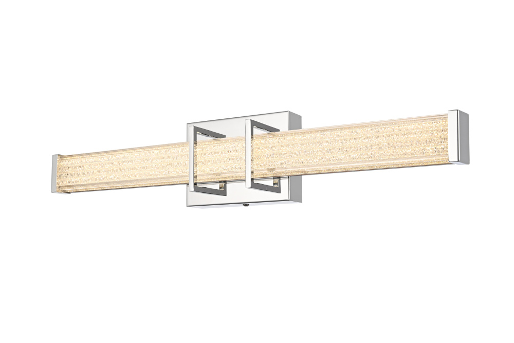 Elevate your space with this captivating linear wall sconce that marries contemporary design with romantic allure. The show-stopping crackled acrylic diffuser creates a mesmerizing display of light and shadow, reminiscent of fractured crystal catching the morning sun. Suspended within a sophisticated black frame, the fixture appears to float against your wall, creating an architectural statement that's both bold and ethereal. The textured diffuser transforms ordinary light into a dramatic interplay of illumination, casting subtle patterns that bring walls to life while providing elegant ambient lighting. This modern interpretation of classic crystal lighting bridges the gap between traditional luxury and contemporary design, making it perfect for both intimate residential spaces and upscale commercial environments. Whether mounted in an entryway, above a dining table, or as part of a sophisticated lighting scheme, this fixture creates an immediate impression of refined taste and artistic sensibility. The contrast between the industrial mounting brackets and the delicate crystalline diffuser perfectly embodies modern romantic design, creating a compelling focal point that enhances any interior style.