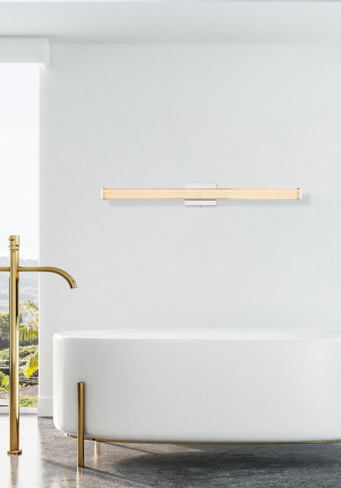 Experience the perfect fusion of form and function with our versatile LED linear wall sconce. The unique crackled acrylic diffuser transforms light into an artistic display, while the tri-color temperature settings provide complete control over your environment's ambiance. Available in four lengths and three distinguished finishes, this fixture adapts to any design vision while delivering efficient, beautiful illumination. Whether mounted horizontally above a vanity or vertically flanking a mirror, this hardwired fixture combines sophisticated style with practical functionality, making it an ideal choice for discerning designers and homeowners alike.