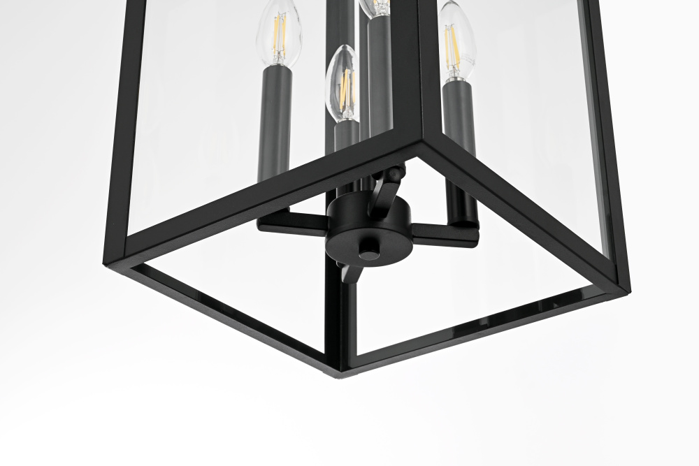 The transparent glass provides maximum light output, enhancing visibility and ambiance.