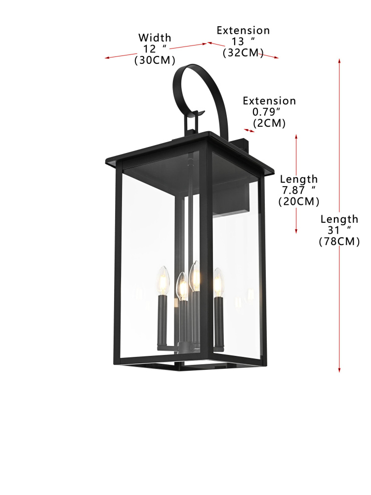 This outdoor wall sconce, crafted from iron and glass, exudes a sophisticated balance between traditional charm and modern simplicity. The rectangular silhouette, clean lines, and sturdy frame make it a versatile addition to a range of exterior design styles. Featuring E12 socket bases, it can accommodate candelabra bulbs, enhancing the vintage lantern appeal of the design. The clear glass panels showcase the beauty of the bulbs, creating a warm and inviting glow for patios, entryways, or garden spaces. Designed for outdoor durability, this sconce not only enhances the aesthetics of your home but also provides essential lighting for a secure and welcoming atmosphere.