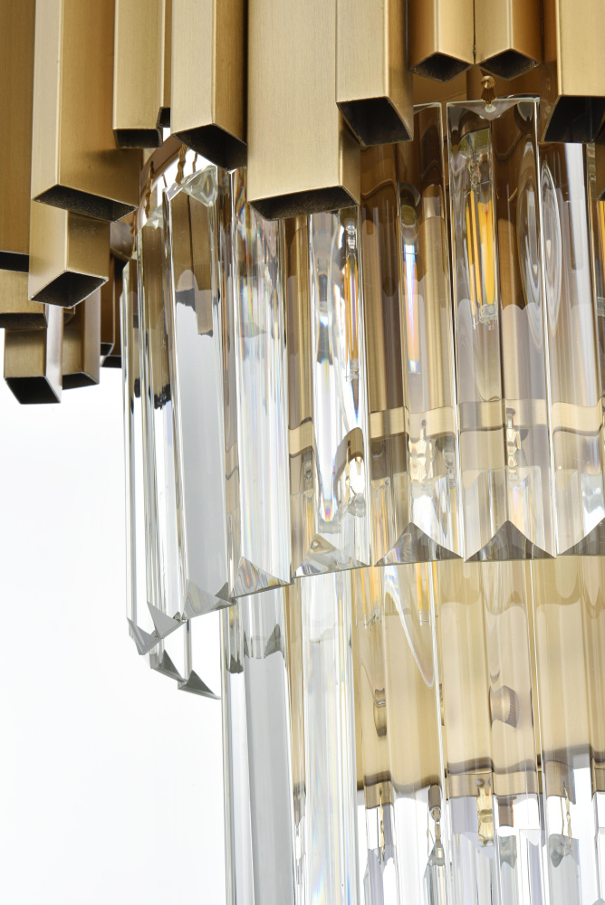 The staggered clear glass pieces add depth and dimension, creating a layered effect that enhances the visual appeal.