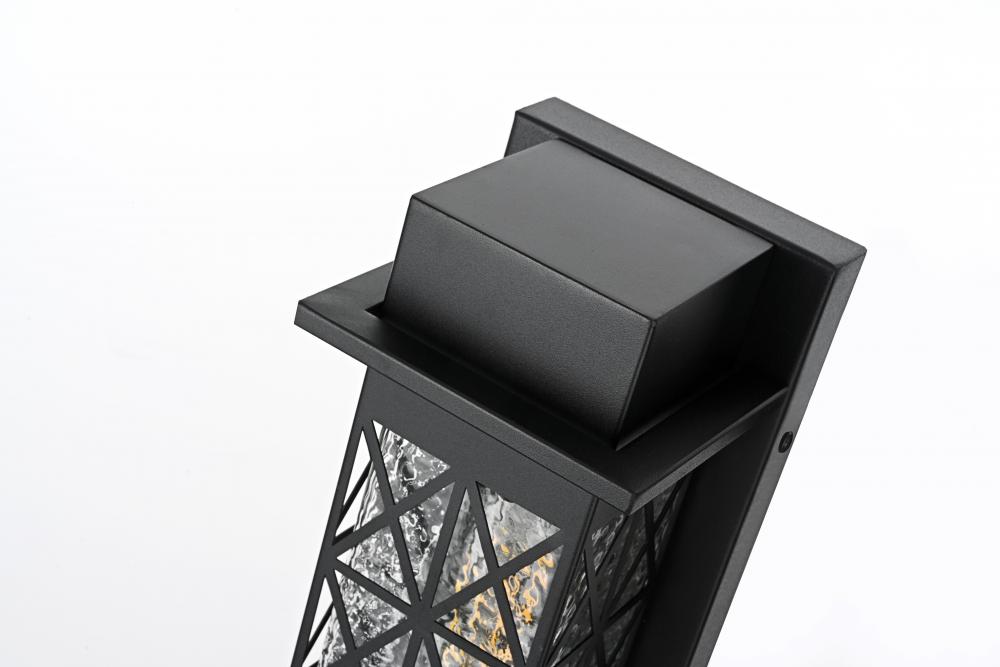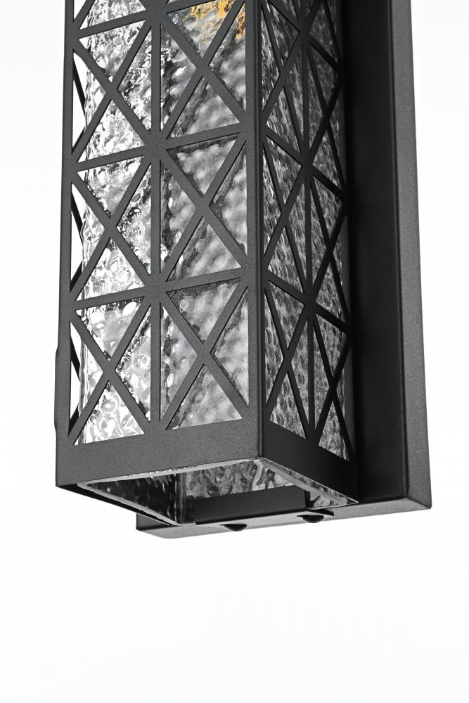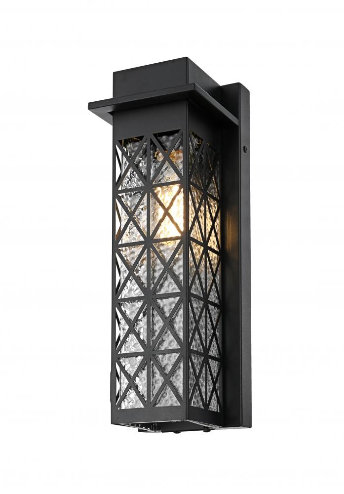 Enhance your home's exterior with this outdoor wall sconce, designed to bring both durability and visual appeal to your outdoor space. Crafted from high-quality iron, this light fixture features a striking criss-cross design that adds both dimension and charm to your entryway, patio, or porch. The textured glass panels create a diffused glow, adding a warm ambiance perfect for welcoming guests. Equipped with a versatile E26 socket, this wall sconce is compatible with various bulb types, giving you the flexibility to personalize your lighting experience. with its sturdy build and distinct geometric design, this wall sconce effortlessly balances both modern and classic aesthetics, making it a great addition to any home exterior.