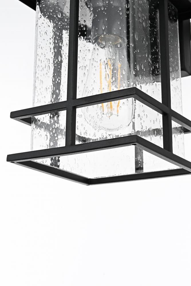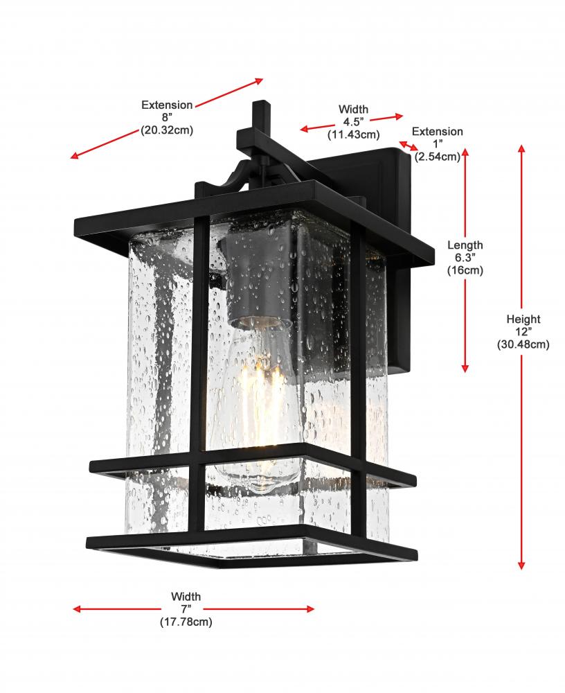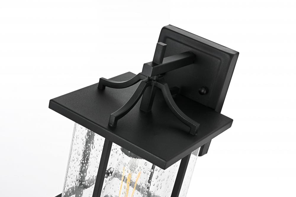 Crafted with an eye-catching blend of iron and clear seeded glass, this outdoor wall sconce adds a modern yet timeless touch to any exterior wall, blending seamlessly with a variety of architectural styles.