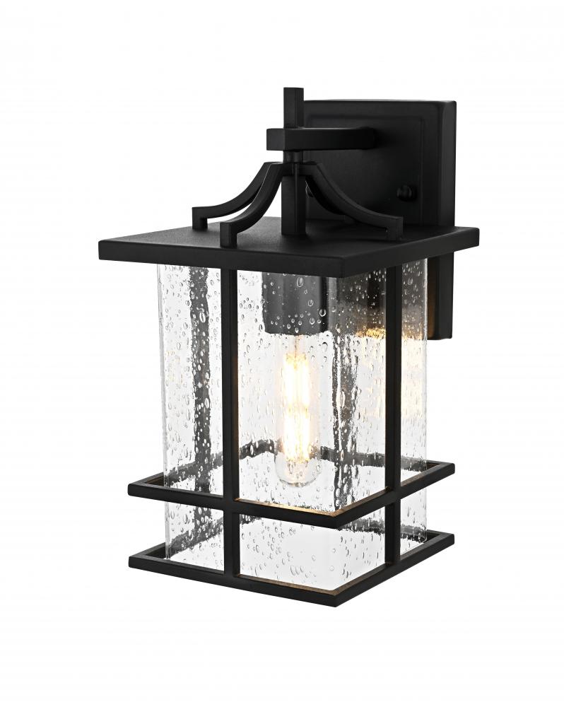 Enhance your home's exterior with this distinctive outdoor wall sconce, crafted from durable iron and elegantly accented with clear seeded glass. The architectural iron frame adds a modern yet understated charm, making it perfect for a range of outdoor spaces. The seeded glass panels softly diffuse the light, creating an inviting glow that’s ideal for enhancing entryways, patios, or garden pathways. Built to withstand various weather conditions, this outdoor light blends aesthetic beauty with functionality to elevate the appearance of your home's exterior.