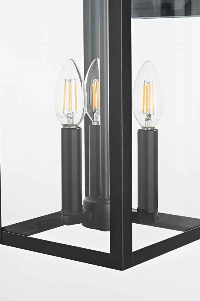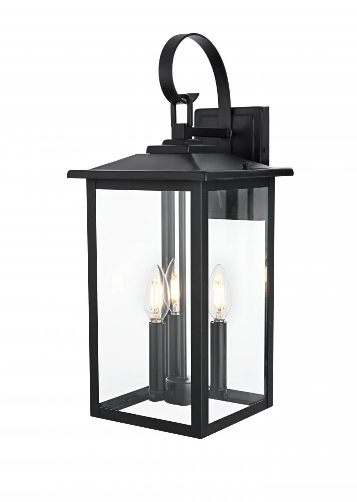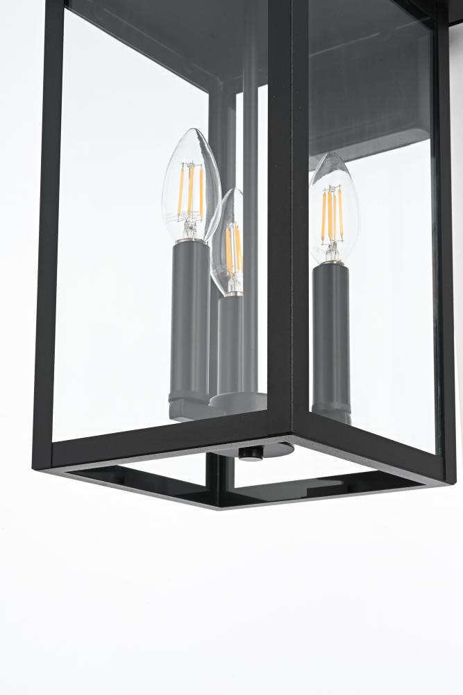 This outdoor wall sconce, crafted from iron and glass, exudes a sophisticated balance between traditional charm and modern simplicity. The rectangular silhouette, clean lines, and sturdy frame make it a versatile addition to a range of exterior design styles. Featuring an E12 socket base, it can accommodate candelabra bulbs, enhancing the vintage lantern appeal of the design. The clear glass panels showcase the beauty of the bulbs, creating a warm and inviting glow for patios, entryways, or garden spaces. Designed for outdoor durability, this sconce not only enhances the aesthetics of your home but also provides essential lighting for a secure and welcoming atmosphere.
