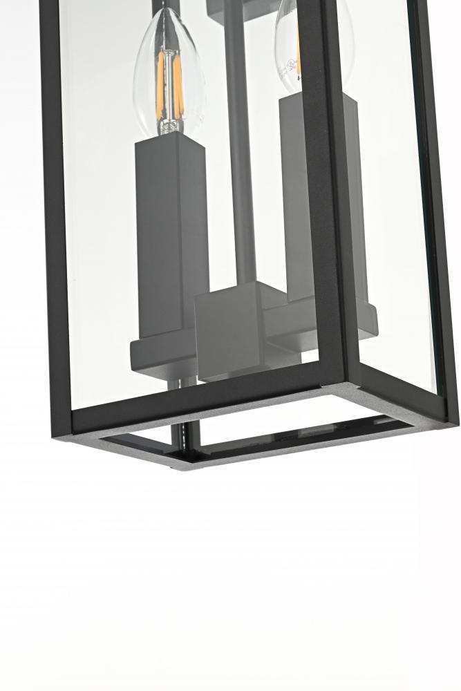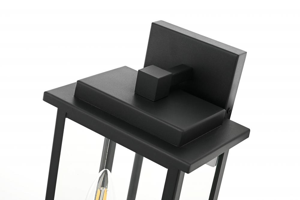 Enhance the curb appeal of your home with this contemporary outdoor wall light, featuring a bold dual-bulb design encased within a modern rectangular frame. Made from high-quality iron with clear glass panels, this fixture effortlessly combines form and function, providing an inviting glow while standing up to outdoor elements. Its wet-rated certification ensures it's suitable for any outdoor location, from exposed porches to sheltered patios. The minimalist backplate and open-bottom design make installation and maintenance easy, allowing for quick bulb changes. Equipped with E12 sockets, this wall light gives you the freedom to select the ideal bulbs to achieve your desired atmosphere. with its sleek style and practical features, this outdoor wall light is the perfect addition to your entryway, patio, or any exterior space looking for a modern upgrade.