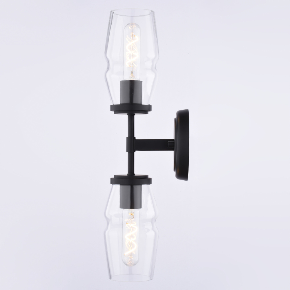 Bring a touch of mid-century modern glamour to your bathroom with the Warren vanity light. The elongated silhouette and chic, clear glass shades offer a contemporary twist on a classic design. The matte black finish adds a touch of sophistication, making it a perfect choice for an on-trend bathroom upgrade. Enjoy installation flexibility with its dual mount capability – hang it vertically or horizontally to suit your space. Add this vanity wall sconce light fixture to any bath, hallway, or bedroom for an on-trend update.