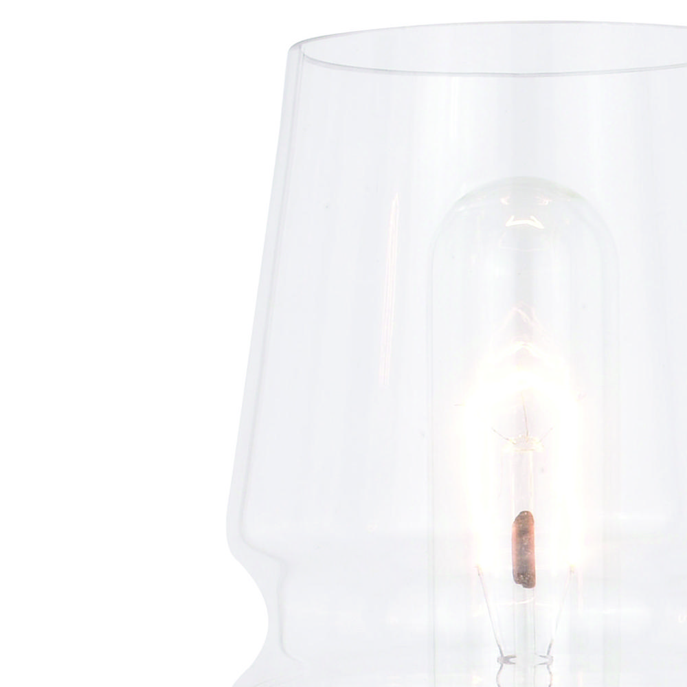 Clear glass provides bright illumination and a mid-century modern feel