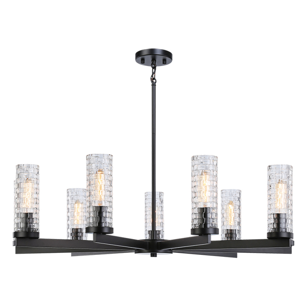 Weaver The distinctive woven patterned glass will undoubtable set a room apart. The Weaver collection is truly a conversation piece.With the unusual glass, the single light pendant and the stunning 6 or 9 light chandeliers will be a stand out feature.The wall mounts come in 2 styles in a single and two light option. Available in Aged Gold Brass and Black finish. LIGHTBULBS NOT INCLUDED