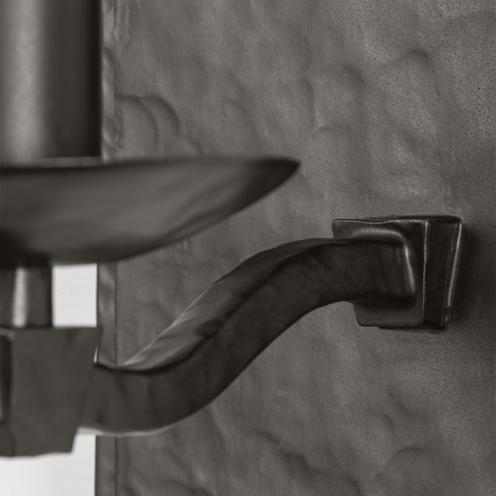 Channels traditional craftsmanship with a modern interpretation, featuring square iron tubes forged into gracefully curved arms
