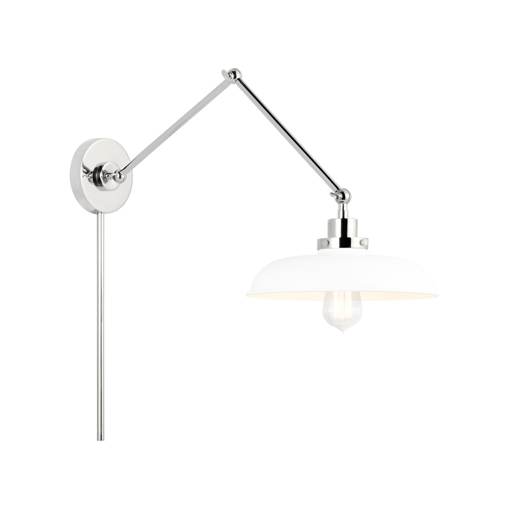The Wellfleet one light wall sconce by Chapman & Myers is inspired by various classic utility silhouette’s - from factory lighting to barn sconces - capped by contrasting metal hardware. Each shade of the Wellfleet collection is available multiple sizes of 3 versatile profiles; either a flat farm dome, a traditional factory dome, or tapered cone. The shades are available with either a black or white finish and are paired with either a burnished brass or polished nickel collar, chain and canopy.