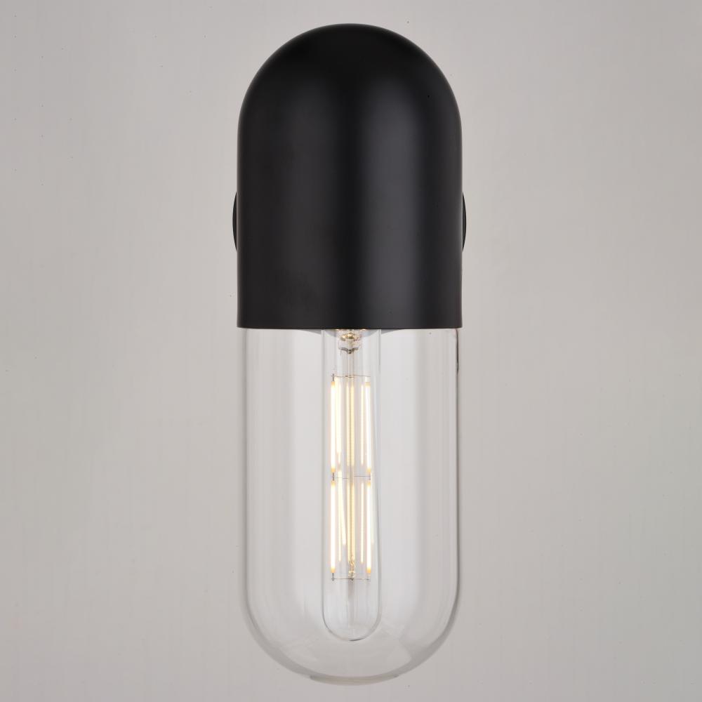 Welcome the retro flair of the West Loop 12.5-in. tall wall light into either your indoor or outdoor spaces. Its pill-shaped design and matte black finish exude timeless elegance. The clear glass shade adds a touch of modernity, while the option for a vintage-style filament bulb completes the look. Rated for outdoor wet locations, this versatile light is perfect for illuminating decks and patios or even your kitchen and family room.