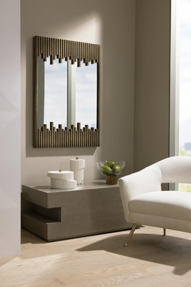 THE WHITTAKER’S GROOVED DESIGN, CREATED IN STACKED, OFFSET DISCS, OFFERS AN INDUSTRIAL NOD REMINISCENT OF MACHINE GEARS. THE CONTEMPORARY CACHE FEATURES A CONTRASTING, NOTCHED ROUND KNOB IN AN ANTIQUE BRASS FINISH. CARVED IN IVORY RESIN, THE ACCENT IS AS VERSATILE AS IT IS STYLE PACKED.