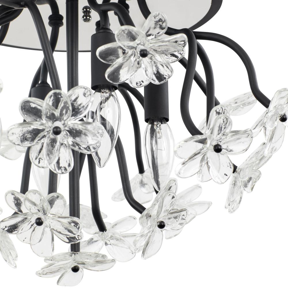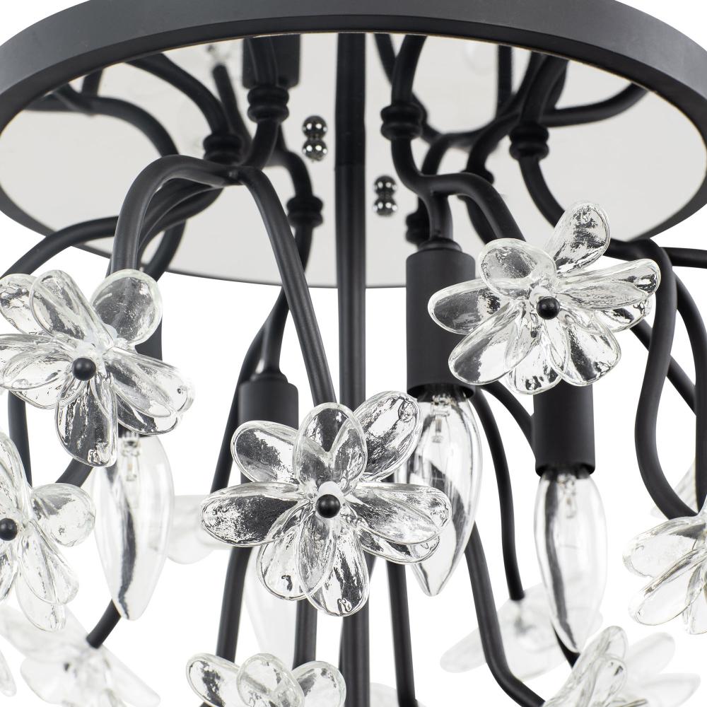 When you first see it aglow with its fine intricacies, it may not show, but the Wildflower collection started its path to existence thanks to Mary V. Walcott's Oconee-Bells discovered in the Smithsonian Libraries and Archives Special Collections. Taking center stage is a touch of Danish modern on top of midcentury. Wildflower combines delicate, handmade ice glass flower petals, with equally delicate wispy hand-forged and recycled steel tubing and metal work. Available in gold or black.