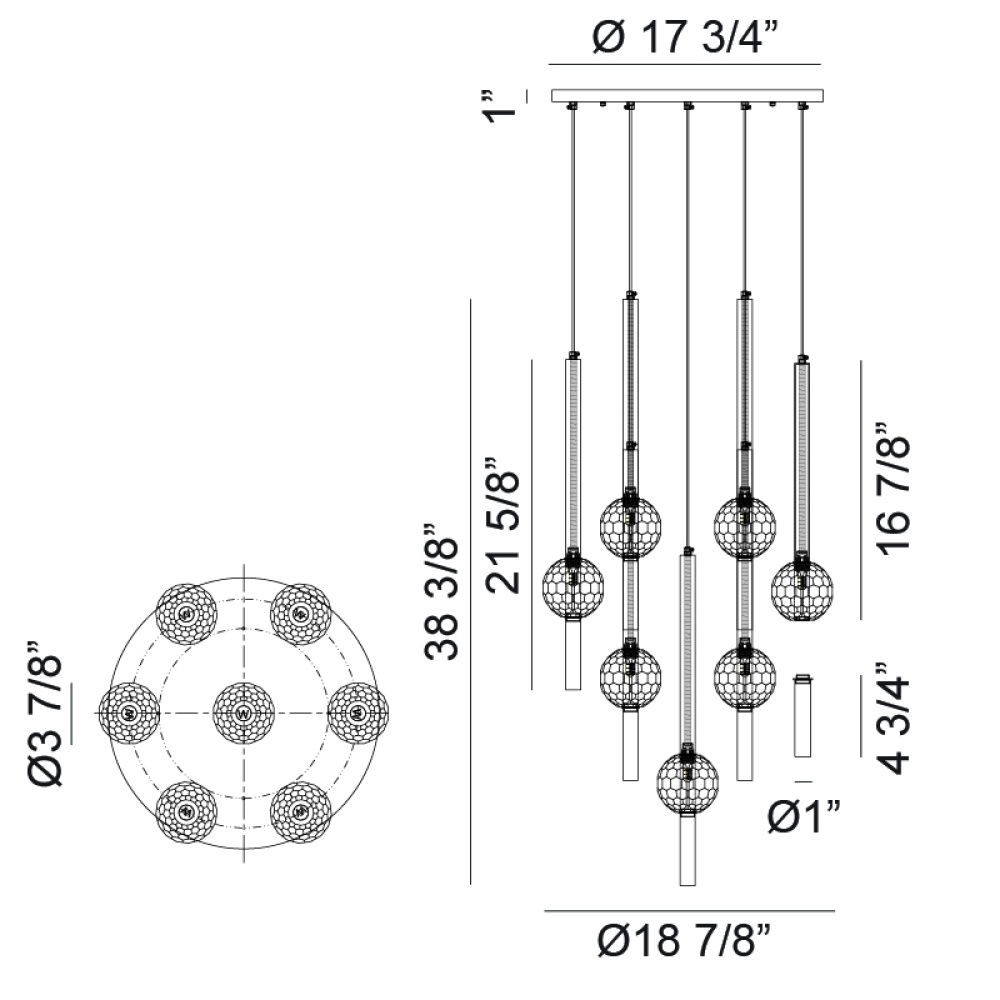 7 LT 17.7" "WINDCHIMER" AGED GOLD CHANDELIER