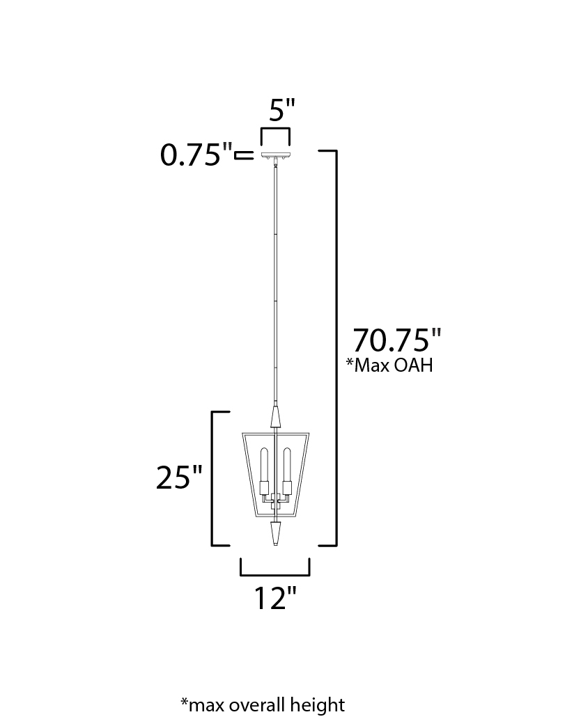 Sharp lines radiate from a pointed pin central body creating geometric angled wings that are sandwiched between matching conical fonts. Finished in a combination Antique Brass and Black, this collection is both contemporary and warm. Complete this look wit