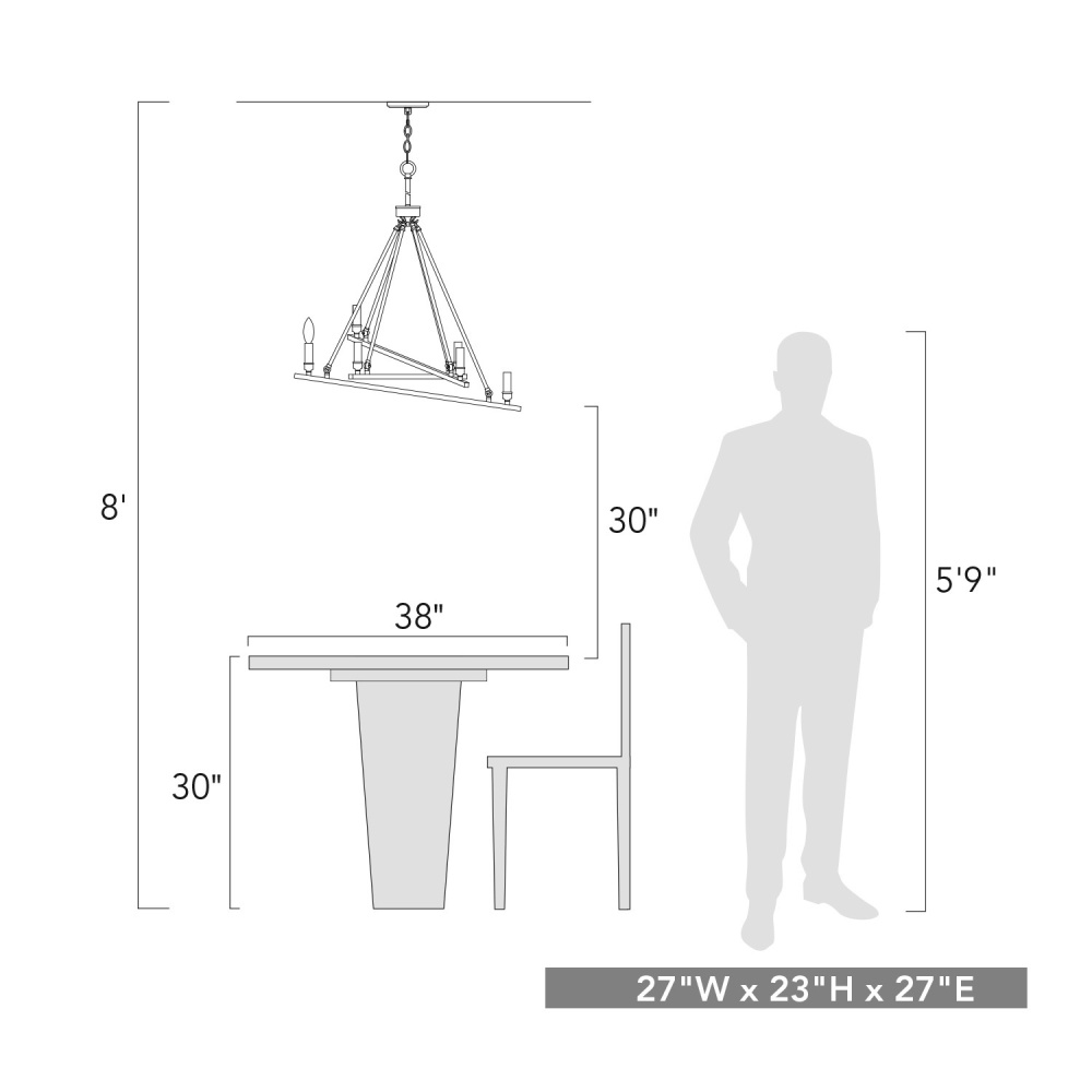 Bring modern elegance into your home with the Wry Lighting Garvin 6-light Chandelier in Chrome. This architectural masterpiece makes a bold statement with its dynamic composition of intersecting linear forms. The design celebrates pure geometric form, enhancing your space with sophistication. Perfect for indoor use, this chandelier is rated for dry locations, making it ideal for bedrooms, living rooms, and hallways. Its sloped-ceiling compatibility and adjustable height (min: 29.75" - max: 137.75") allow for versatile installation tailored to your aesthetic needs. Overall dimensions measure 27"W x 23"H x 27"D, and it requires six E12 candelabra base bulbs (not included), each with a maximum wattage of 60. Illuminate your surroundings with sleek beauty while enjoying the durable, easy-to-clean polished chrome finish that adds a touch of brightness to your home. With the Wry Lighting Garvin chandelier, experience the perfect blend of functionality and design that enhances any modern space.