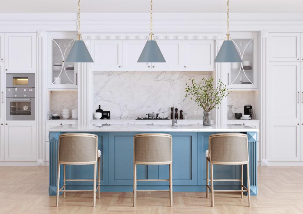 Vibrant Gold's soft finish meets soothing blue to create a harmonious blend of sophistication and tranquility. The blue-gray color has a rich undertone that is comforting and refreshing, while the Gold exudes a warmth of modern elegance.
