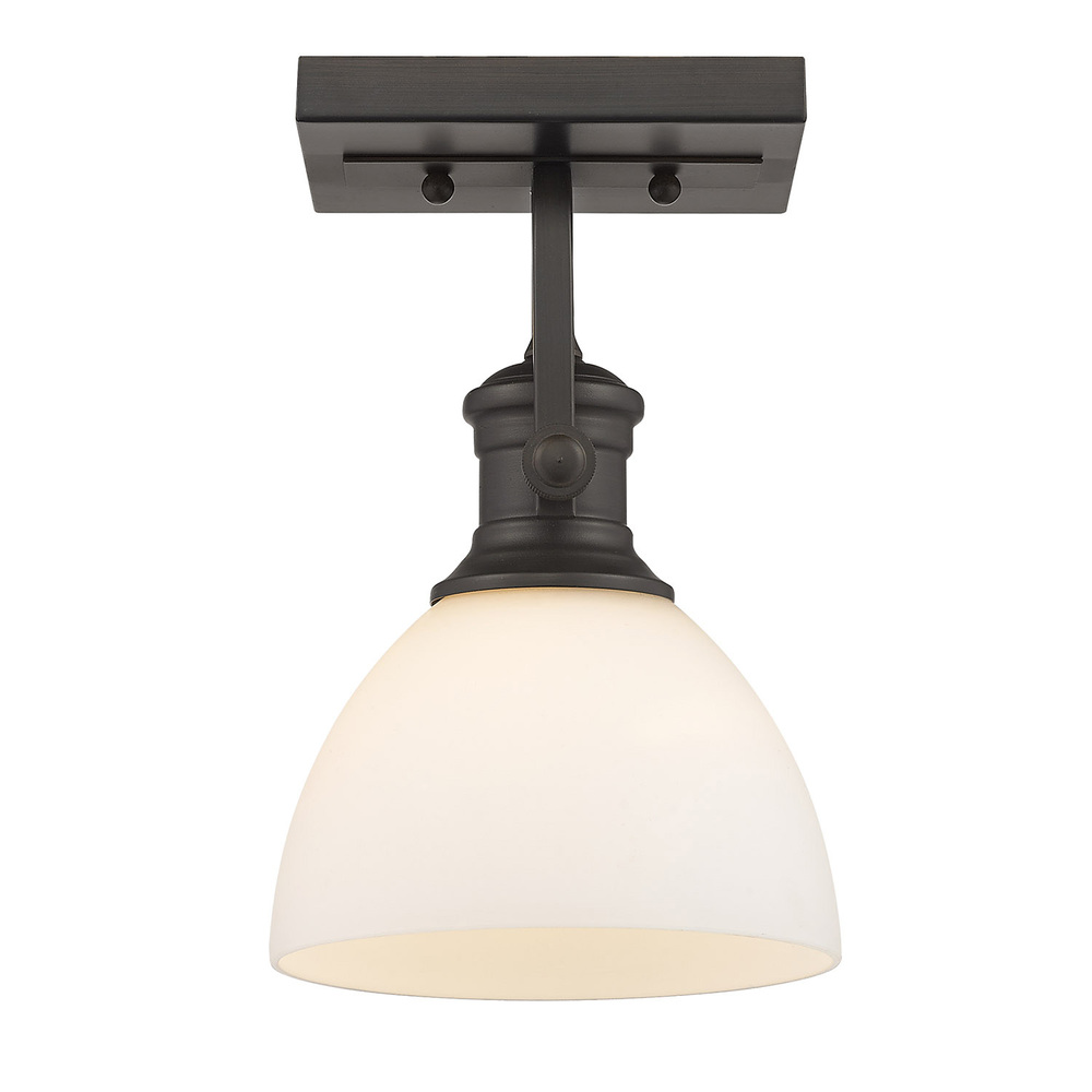 Bring timeless elegance into your home with the Yep by Golden Lighting Hines 1-light Vanity in Rubbed Bronze. Featuring an Opal Glass shade, it creates a welcoming atmosphere in your space. The Opal Glass shade is designed to diffuse light evenly, providing a soft, glare-free glow, enhancing the charm of your decor. Its milky, translucent finish adds a touch of sophistication and warmth to any room. The Rubbed Bronze finish adds classic warmth, being not only versatile but also eye-catching with its rich, deep brown base and subtle highlights of coppery bronze. This finish complements a range of styles, from traditional to transitional. Ideal for bathrooms, this fixture is rated for damp locations, making it perfect for spaces with occasional moisture. The adjustable directional heads allow you to customize the lighting to highlight specific areas or objects. The vanity light requires one E26 Medium base bulb (not included), with a maximum wattage of 60W. Overall dimensions are 6.88"W x 8.75"H x 8.25"D, fitting beautifully in any vanity space. Elevate your bathroom's ambiance and experience the quality craftsmanship of the Yep by Golden Lighting.