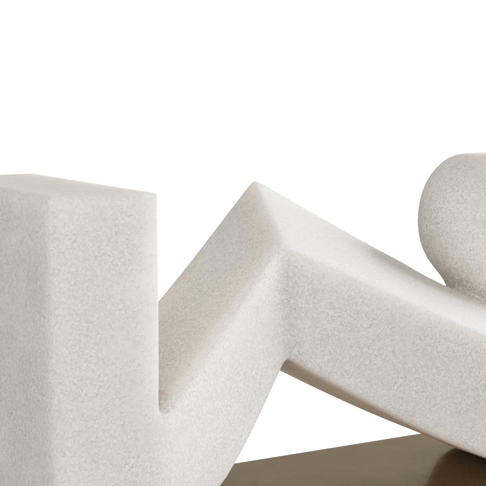 The flowing lines of a reclining figure are embodied in an abstract form of ivory ricestone composite. Reminiscent of modernist sculptures, it is mounted on a slim steel base finished in antique brass. Finish will vary.