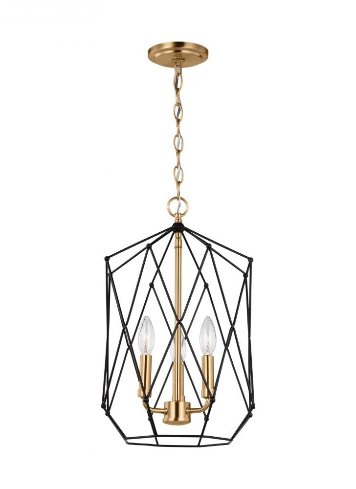 The Zarra three light indoor pendant in satin brass enhances the beauty of your home with ample light and style to match today's trends. Defined by its open and geometric cage silhouette, Zarra brings a bit of mid-century modern flair