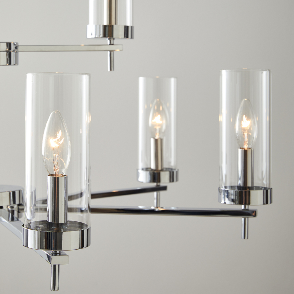 The Zire nine light multi-tier chandelier in chrome supplies ample lighting for your daily needs, while adding a layer of today's style to your home's décor. Zire embodies simple clean lines in three finishes that strike a perfect balance of elegant yet minimalist design.