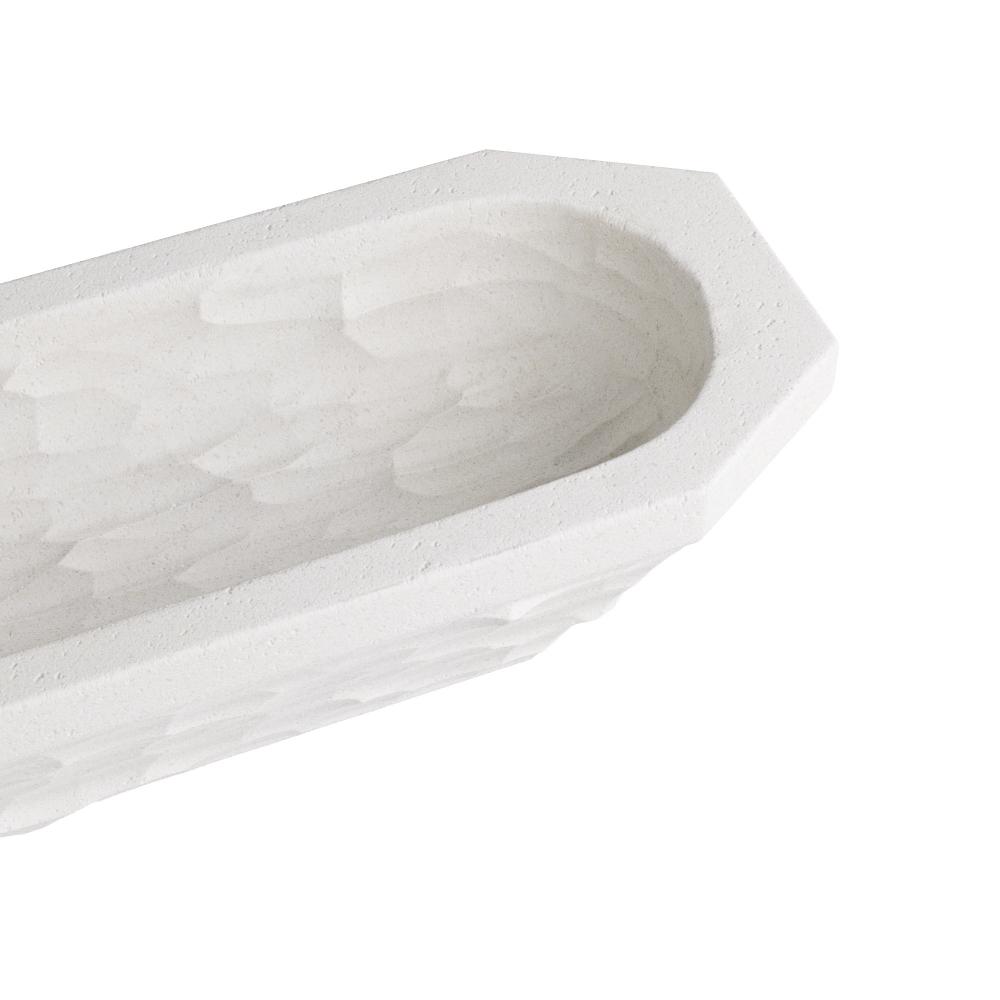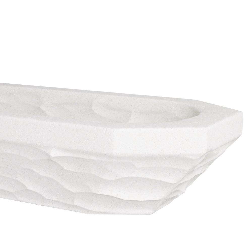 A shallow vessel of ivory ricestone composite is an impactful accent for any tabletop. Carved with a pleasing texture, its simplistic silhouette is reminiscent of a classic wooden bread bowl. Finish will vary.